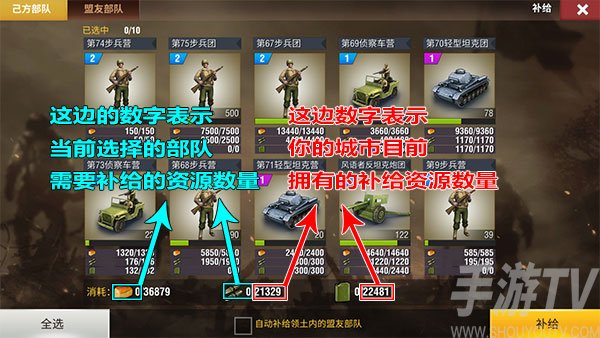 点击城市选择补给,进入补给页面,同学们请认真看仔细了啊!这些数字代表什么一定要记牢,下次别再来问我了啊
