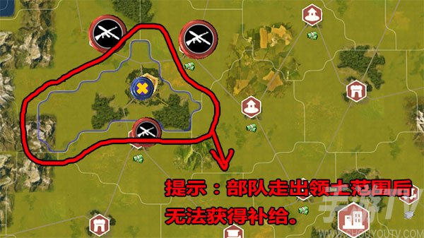 如果你的部队已经跑出领地范围了就没法补给了。记住要是你的部队在路上没补给了,比如你的坦克没石油了,然后动不了,怎么办呢?做好笔记啊!
