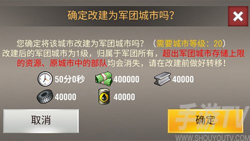 5、改建就是把城市改建为军团城市,同一个军团可以共同使用军团城市。