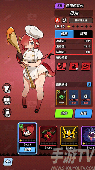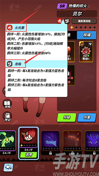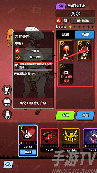 如:“热情的炊火-贝尔”:他代表着“龙焰羁绊-火元素-幻化”,战斗中祝福词条三选一时,可以优先需要选取包含“龙焰”“火属性”的祝福词条,能让贝尔的输出收益最大化。