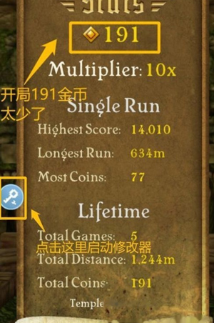 2、如图所示,添加游戏“神庙逃亡”之后,点击图标启动游戏。记住,一定要在八门内使用修改器启动才能生效!