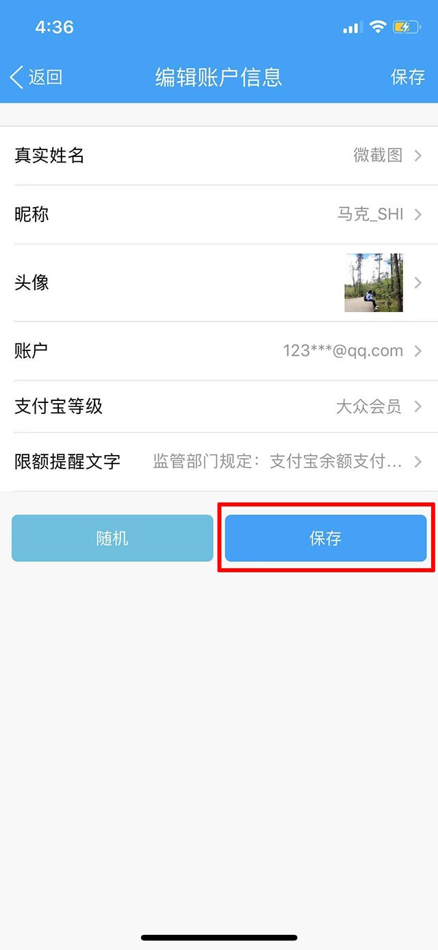 3、编辑用户姓名、昵称、头像、账户等信息,点击保存