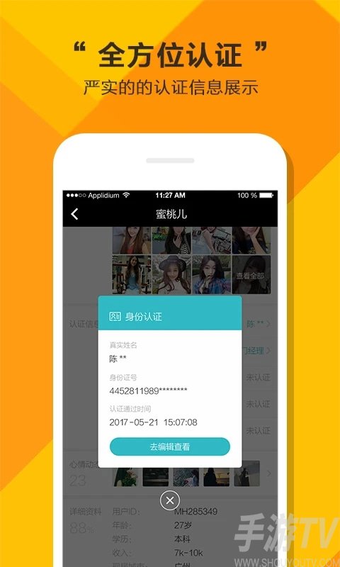 1、实名认证:实名身份认证,保证真人真照片真背景资料,严肃婚恋交友拒绝欺骗;