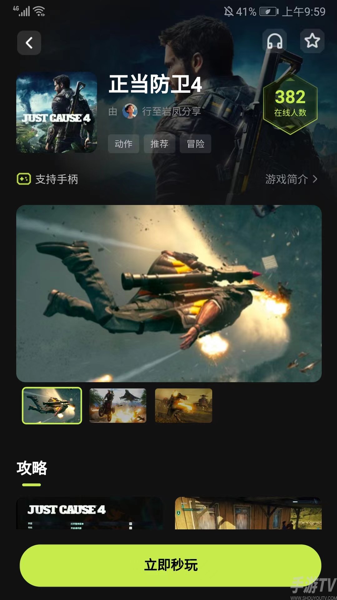 3、进入游戏详情界面,可查看游戏介绍和相关的攻略,点击【立即秒完】就可以直接开始游戏了,