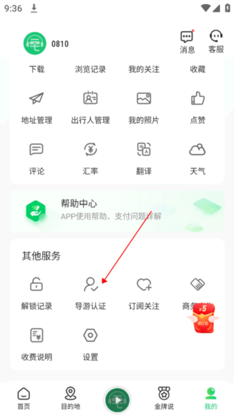 1、首先进入软件注册并登录,点击下方【我的】,下滑到底部点击【导游认证】。