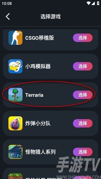 4、然后选择要联机的游戏,支持的游戏有很多,比如泰拉瑞亚手机版;