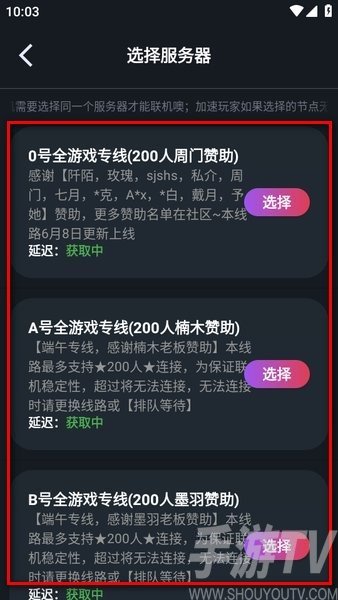 2、选择服务器里面有很多,都可以使用,随便选择一个延迟更低的就可以;