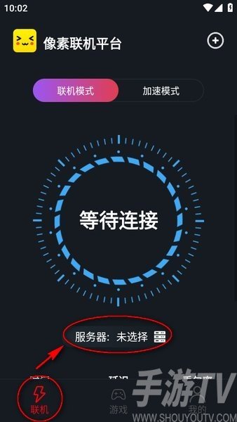 1、打开像素联机app后,登录账号,点击左下角的“联机”,并选择“服务器”;