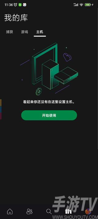 2、然后“我的库”这里就会出现你玩xbox游戏时自动上传的一些成就截图之类,但是还没绑定主机,点击开始使用设置主机