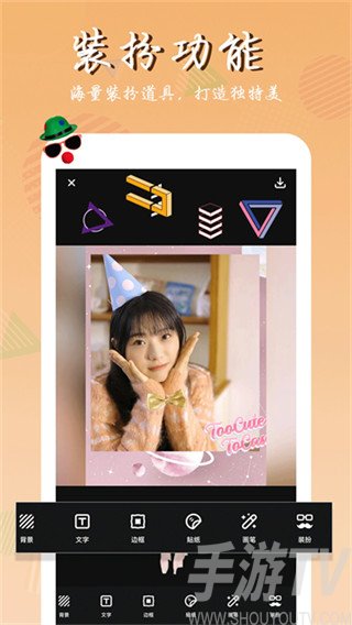 2、三百种美图贴纸精致相框和背景素材,轻松装点直接的照片;