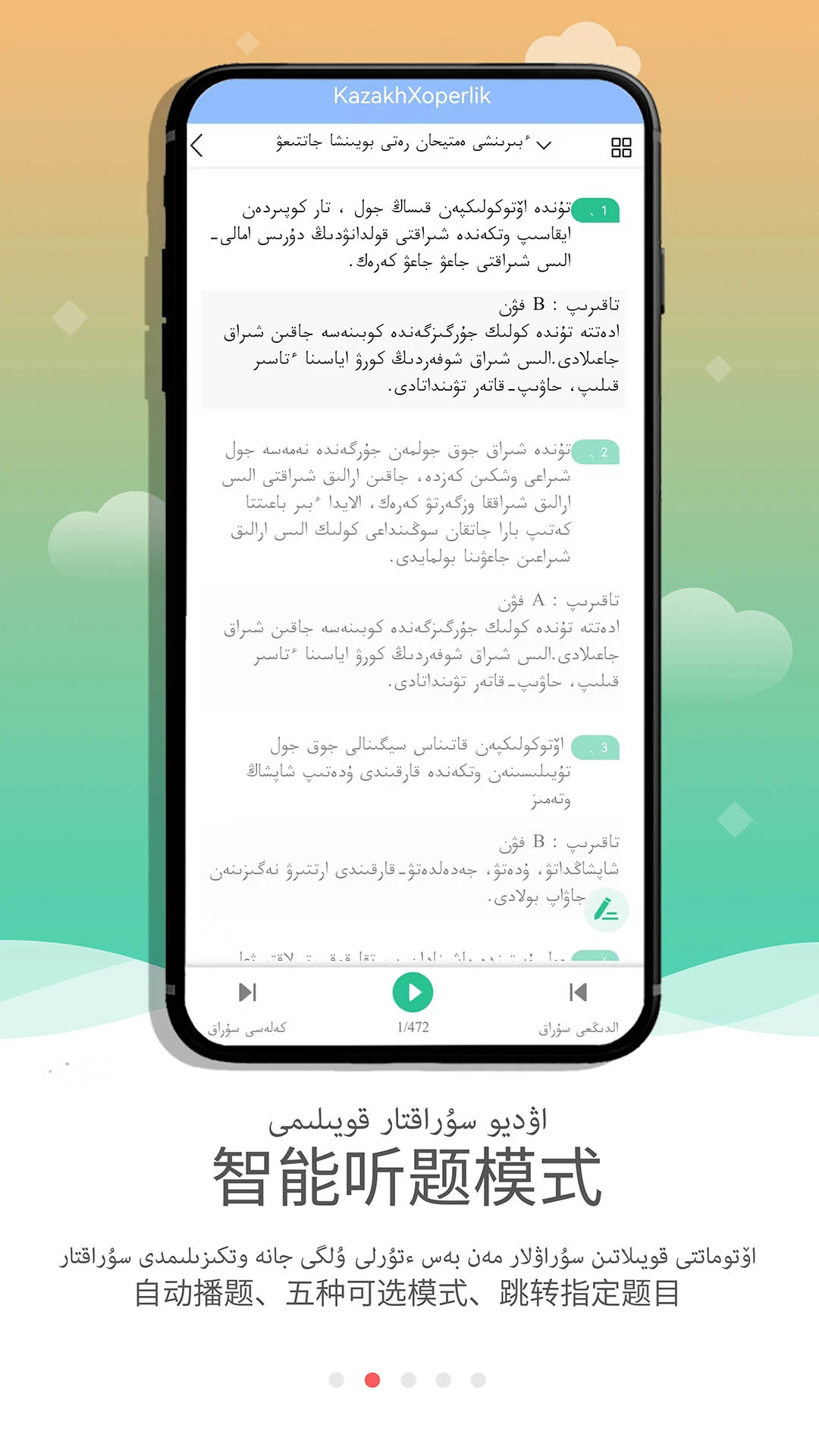 KazakhXoperlik是驾考哈萨克语版,专为哈语驾考学员考驾照而设计,提供科一科四语音技巧的理论学习。有顺序练习、随机练习、专项练习等多种驾考学习模式,内容涵盖小车C1/C2/C3、客车A1/A3/B1、货车A2/B2、摩托车D/E/F驾驶证。是百所驾校的合作伙伴,通过率高,考点押的准!