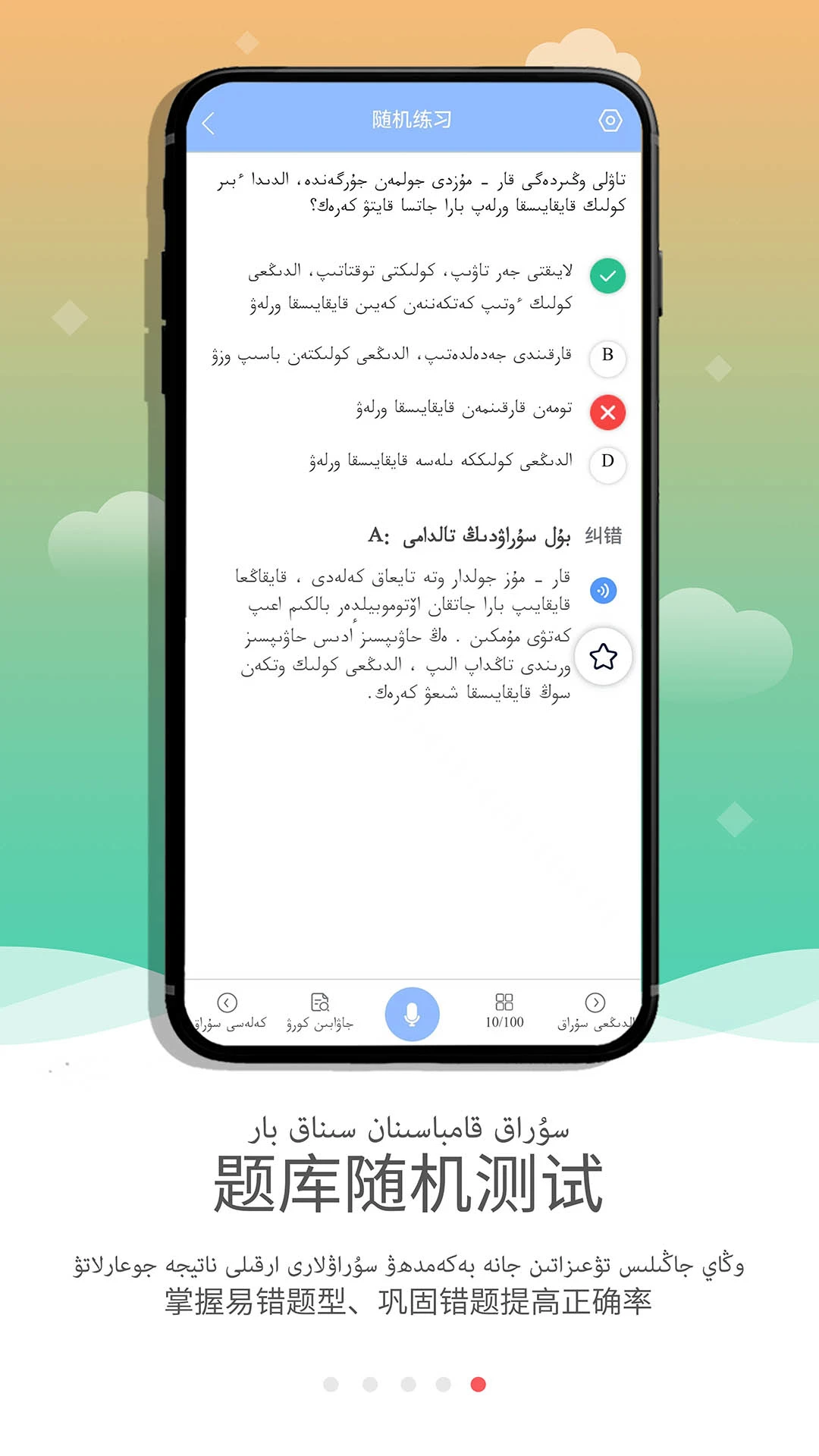 4.语音功能:可设置语音开关,自动播题,支持后台播放,对不识字的人群很友好;