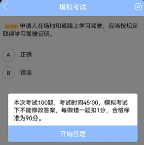 模拟考试:全真模拟考试,包含新施行的新交规考题