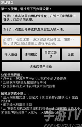 1、打开虚拟键盘,上面标明了快速使用提示和触摸屏仿真提示;
