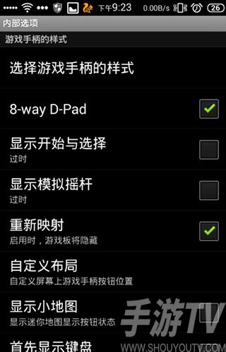 注意: 显示开始与选择和显示模拟摇杆 推荐关闭