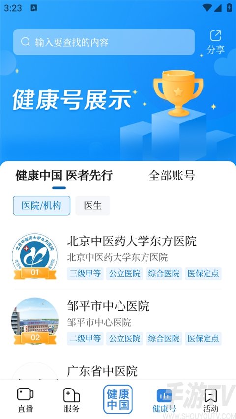 4、点击健康号,里面有很多医院的资料以及排行可供用户咨询。