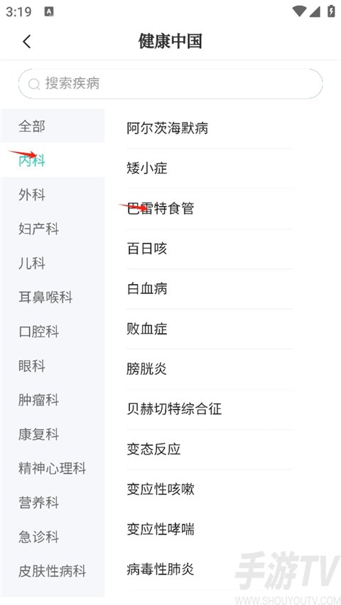 4、小编以内科相关疾病举例,点击内科,点击巴雷特食管;