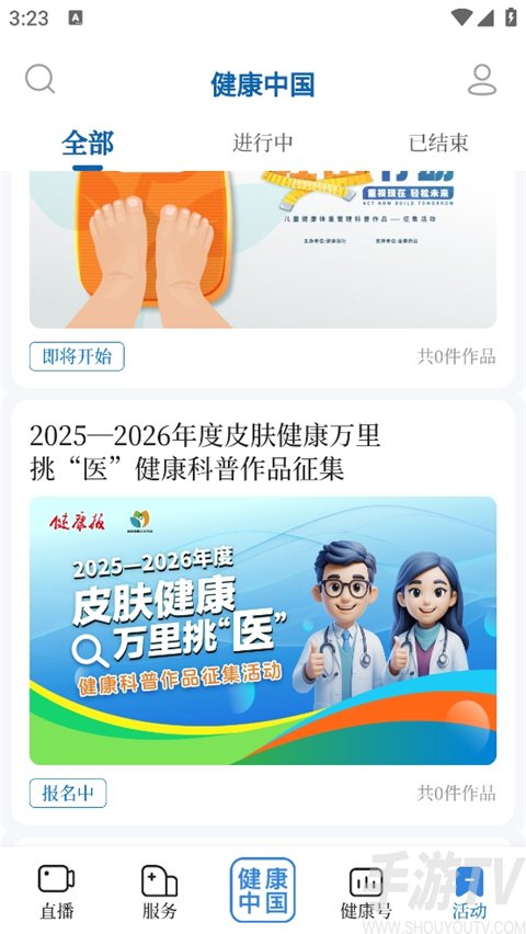 5、获取活动比赛信息,比如新时代健康科普作品征集大赛,支持报名参加。