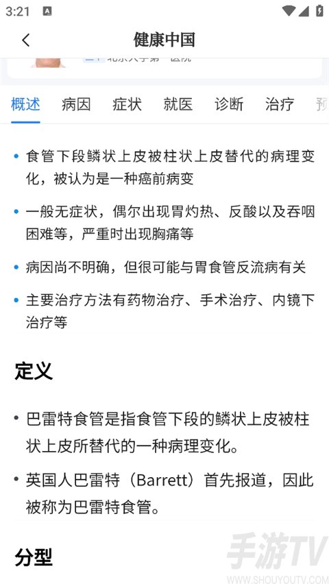 5、在这里可以看到我们可以看到这个疾病的相关症状,病因,如何治疗及日常管理等等。