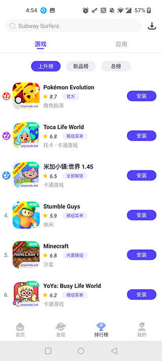 1、搜索或在排行榜中找到自己喜欢的游戏,这里有很多内置模组的游戏可以选择。
