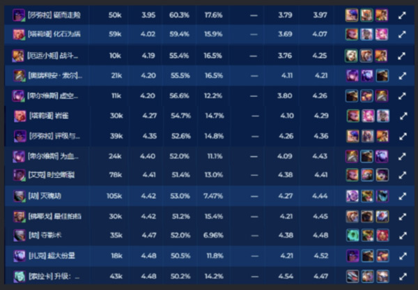 骰子/决斗冕/黄金门票这三个也属于开局必选的强化,2-1选的平均排名比后两个选高很多。骰子这赛季玩法很多,比较主流的就是4级骰怪兽或者玩青钢影/德莱文这种比较好骰的阵容;