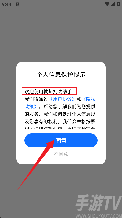 2、进到软件首页,如图所示,首先请同意用户协议和隐私政策。