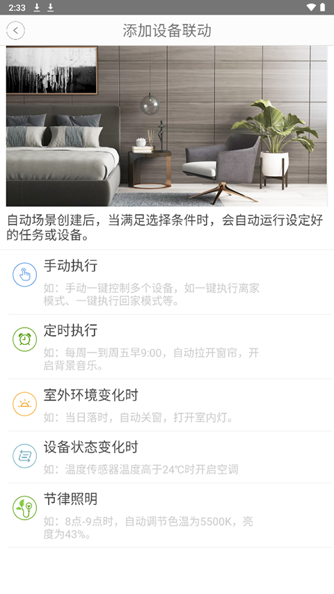 2、用户的联动选择帮助用户提高对智能家居的选择与操作;