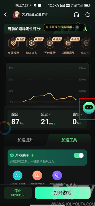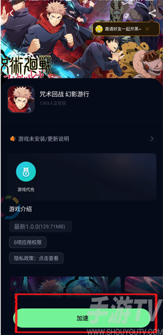 1、点击想要玩的游戏,并且进行加速(这里以咒术回战为例哦);