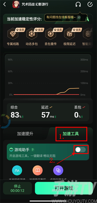 2、进入加速界面后,点击加速工具,随后点击开启游戏助手;