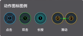 点击【新建】或悬浮窗内【新建模板】可打开悬浮操作台,点击【新增动作】可添加“点击”、“滑动"、“双击”、“长按”四种动作,长按动作图标可设置动作间隔。