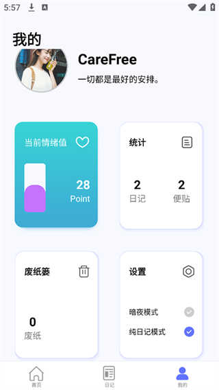 无忧日记app是一款集智能化心情记录、个性化排版与数据统计分析为一体的便捷应用。无忧日记app通过简洁直观的操作方式,让用户随时随地记录自己的心情状态,并支持选择天气、地理位置和多种心情标签,打造更真实的情绪轨迹。除了支持图文混排、精美排版与PDF导出,无忧日记app还会根据每周心情数据生成可视化报表,为用户提供更贴心的情绪分析和自我调节建议。同时,无忧日记app注重隐私保护,所有日记均存储在本地,保证个人心情与文字不被泄露。
