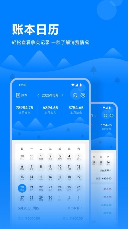 日历查阅:快速查阅每月账单,每日开销明细一清二楚。