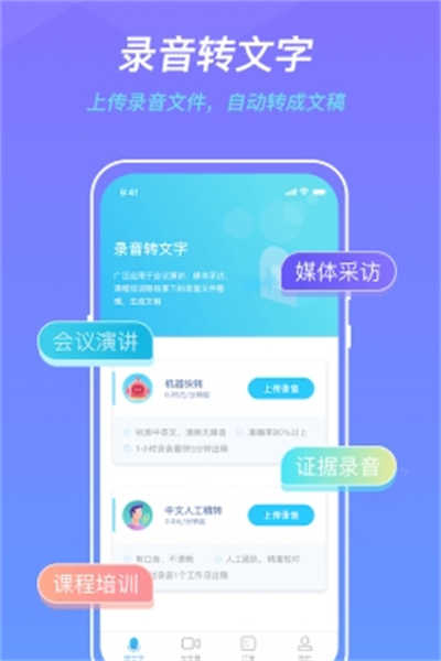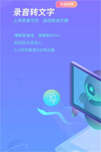 针对音质清晰,发音标准的录音,运用先进的语音识别和自然语音理解技术进行转写,1小时录音最快5分钟出稿,还可自动区分说话人。