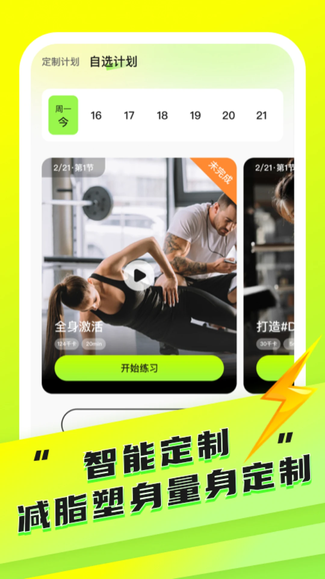 为你提供量身定制训练计划+营养指导,跟着练、跟着吃,养成健康好习惯,收获理想好身材;