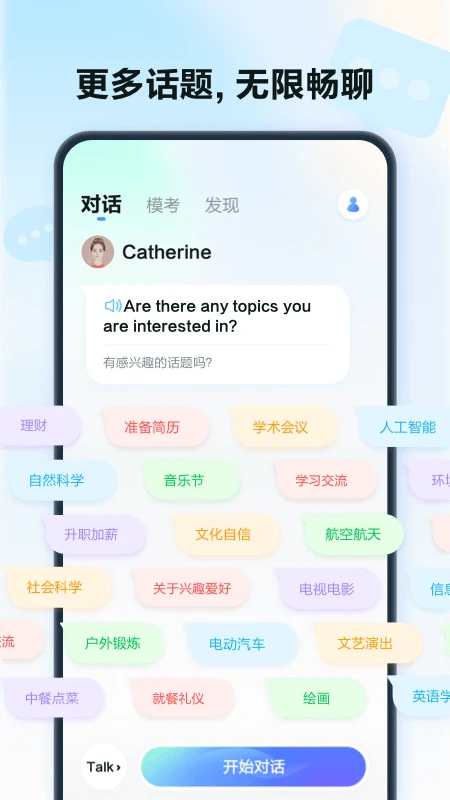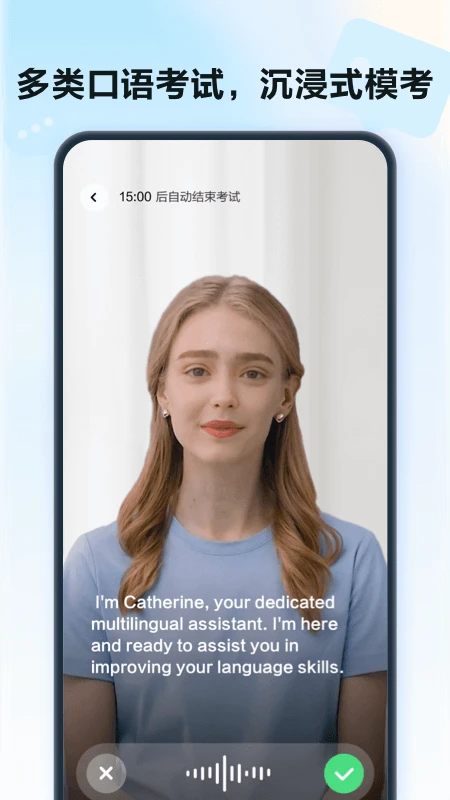 模拟真实交流场景,通过对话互动提高实战口语能力,系统纠正语法和发音问题。