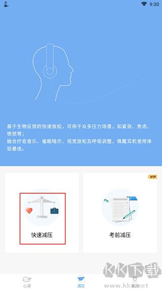 基于生物反馈的快速放松法,融合视听觉放松、心理暗示和呼吸调节等减压技巧,恢复理想的情绪状态。