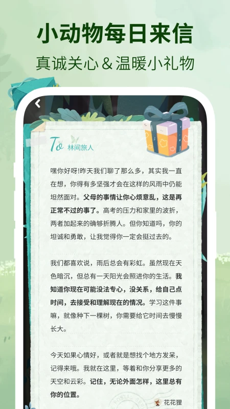 聊愈后的第二天,你会收到来自小动物的信件,写满对你的认可和关心。真正的认可并不是随口的夸夸,而是「我看见你在努力」,深入洞察内心后的认可更为珍贵。