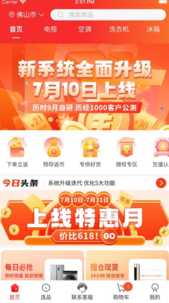 参与下单返利活动让用户购买各种电器获取更多返利资源;