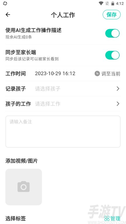 5、之后,填写相对应的信息即可,还可以直接同步至家长端,然后点击右上方的【保存】;