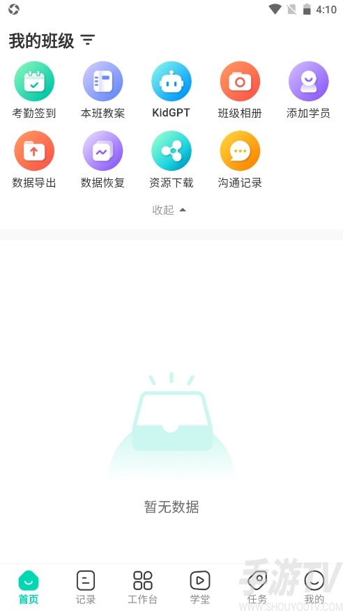 3、在首页,用户可以进行考勤签到,查看本班教案,班级相册,添加学员等操作;