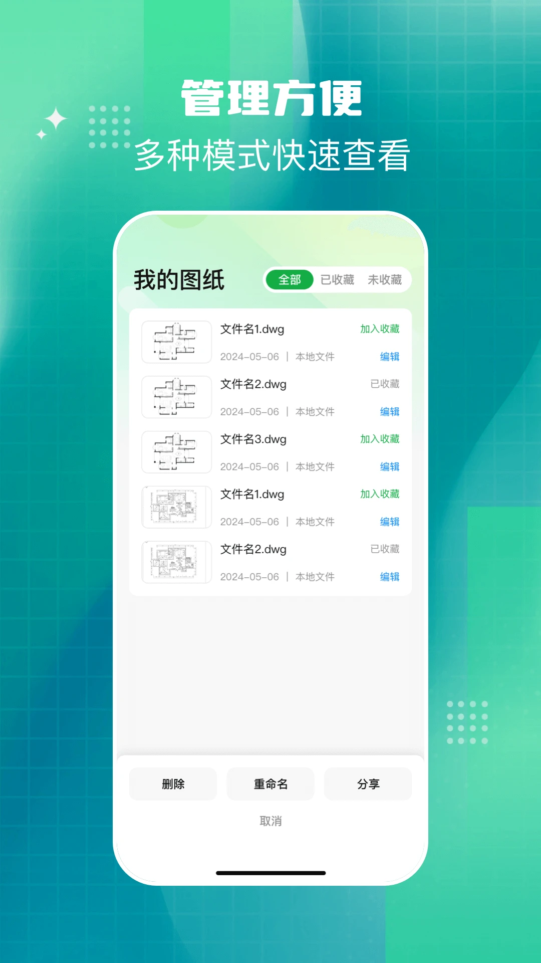 免费CAD测量看图王是一款实用的手机查看图纸的办公软件。软件支持打开多种格式多种版本的图纸,同时支持多种高效的图纸编辑功能,为用户带来了良好的看图设计体验。软件支持对多种数据进行测量,测量结果可以一键导出到Excel表格,数据清晰一目了然。从而有效提升用户的办公效率。