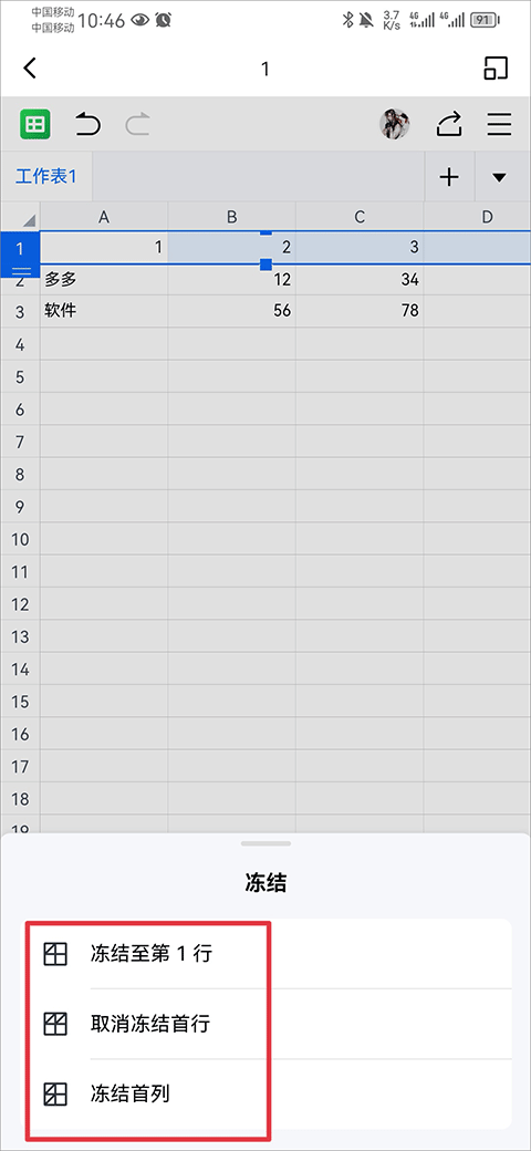 3、选择冻结后在你滑动表格时,被冻结的这一行、或一列都不会隐藏
