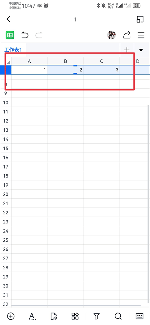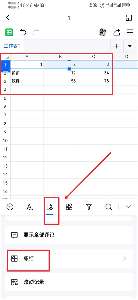1、在表格中下方的菜单栏中点击文档图标,并在该功能中点击冻结
