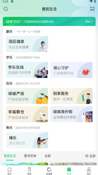 以满足业主日常生活需要为核心,基于绿城自有优质资源并通过严格的品控机制,整合社会优质资源,为业主提供全生活维度的优质服务,同时支持接 入iPhone健康数据,为业主提供全生活维度的优质服务。