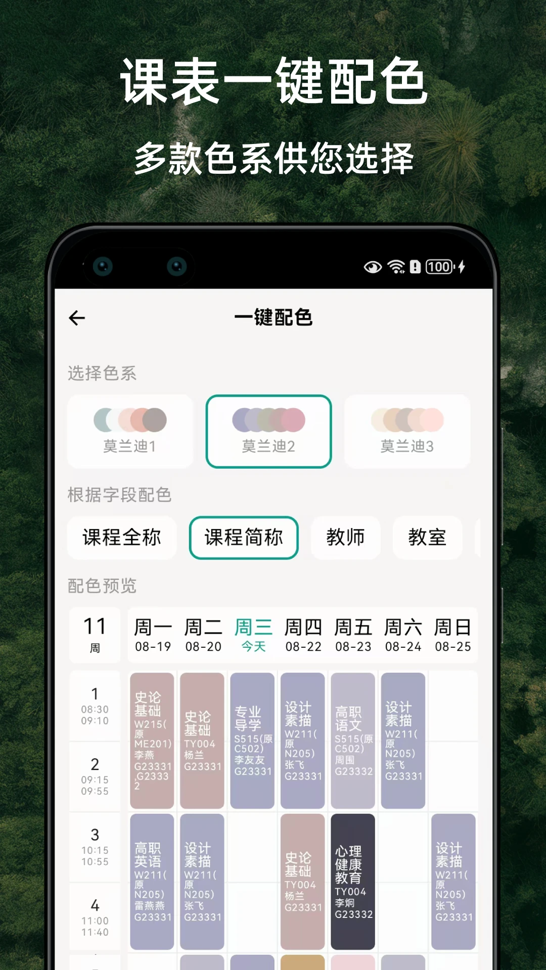 1.可自由设置上午、下午、晚上各阶段课程数量