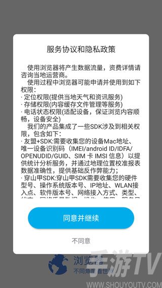 在本站下载安装并打开微米浏览器最新版,点击同意;