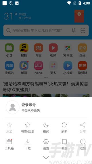 点击菜单,你可以登录浏览器账号和调整浏览器设置;