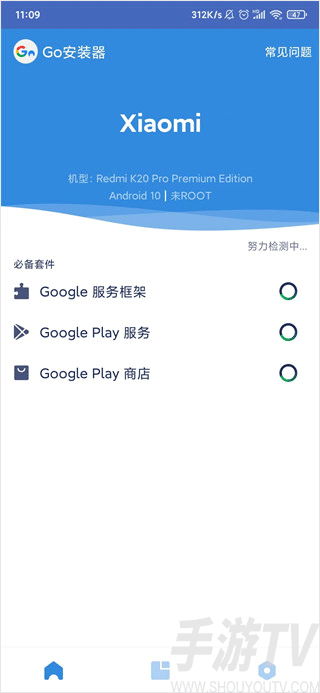 4、可以看到检测完成小编的手机已经安装了三件套可以正常使用了,未安装将自动进行安装和更新;