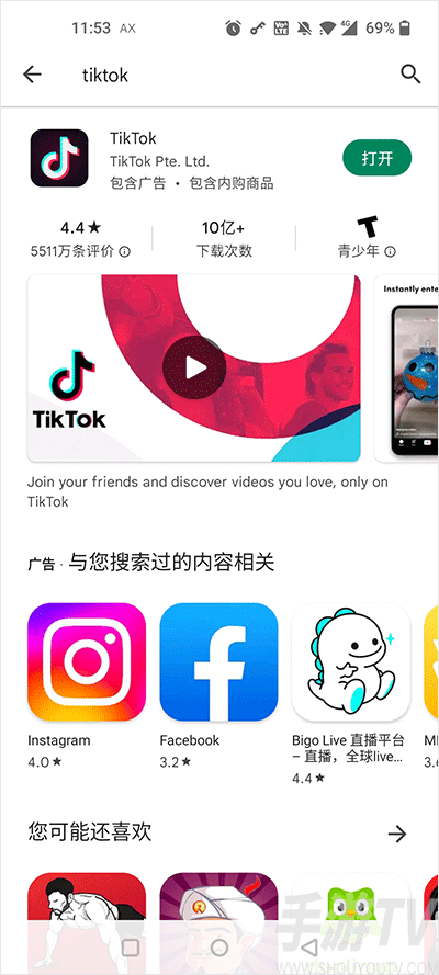 5、然后挂上加速器,点击谷歌商店,搜索tiktok,然后点击右边的下载就可以了!