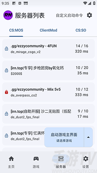 3、进入服务器板块,选择刚刚下载好的游戏,选择游戏版本。